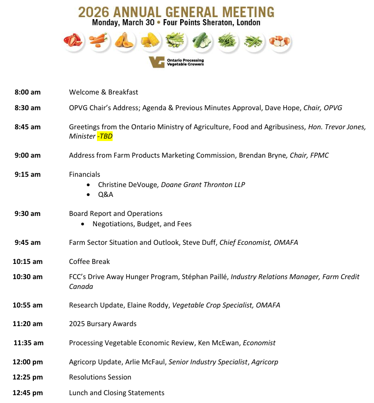 Ontario Processing Vegetables
